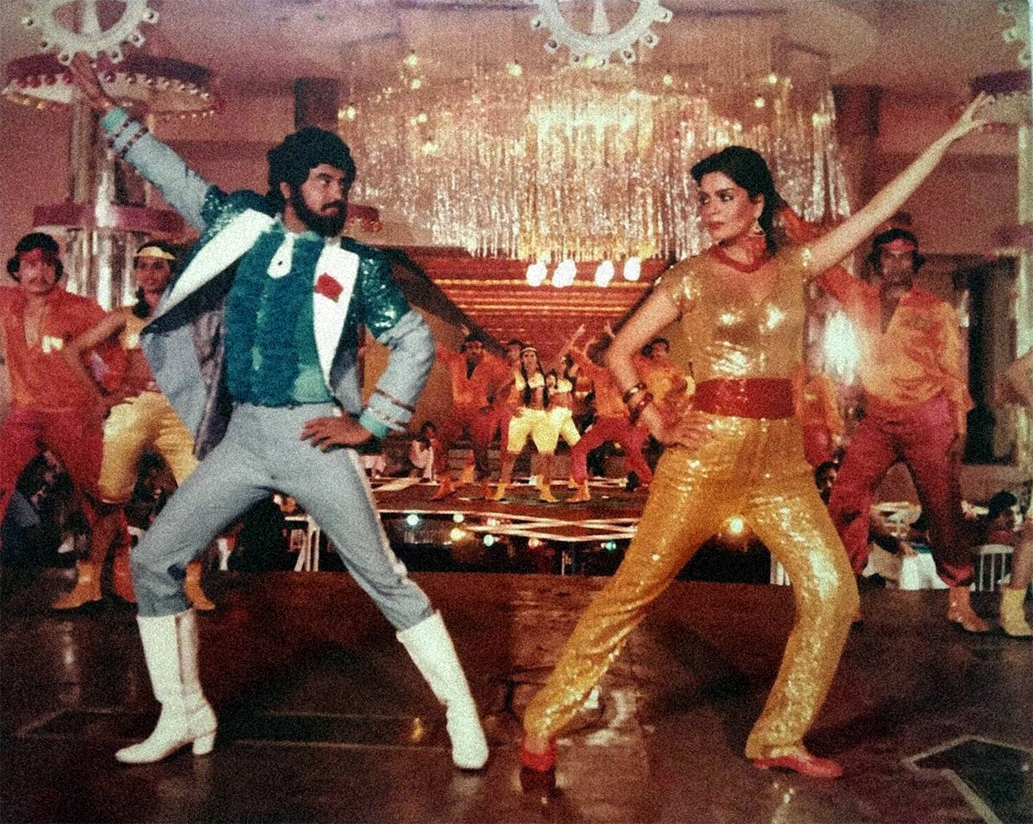 <h1 class="full">This timing was significant. As in the USA, disco in India closely followed an oppressive political climate. The 21-month Emergency had only been revoked about two years before Bollywood’s disco fever, which was a call to liberation, cosmopolitanism and modernity: a cultural handover to the youth of the country. In his signature black sunglasses and heavy gold necklaces, Bappi Lahiri composed, produced (and sometimes plagiarised) many memorable tunes: the 1982 Disco Dancer album featuring ‘Jimmy Jimmy Jimmy Aaja’ which became a global sensation during the COVID-19 lockdown; ‘Jawani Janeman’, seductively sung by Asha Bhosle and brought to life by a gold-clad, glamourous Parveen Babi; ‘Disco Station’ , ‘Intehaan Ho Gayi’ and ‘Yaar Bina Chain Kaha Re.’ R.D. Burman refused to stay behind, composing ‘Yamma Yamma’, ‘Aa Dekhen Zara’ and ‘Jahan Teri Yeh Nazar Hai.’ Extravagant sets; flared, flowy bell bottoms to make dance easier; shiny headbands; all of Russia – where Hollywood was censored–drooling over Mithun Chakraborty in Disco Dancer. Unlike the West, where it was for those on the margins of society, Bollywood rebranded disco. It came to be associated with affluence: men in tuxedos–Feroz Khan, Shashi Kapoor–stoically gazing at women like Aman and Babi, ornamental, drenched in sequins, singing and dancing for them.</h1>