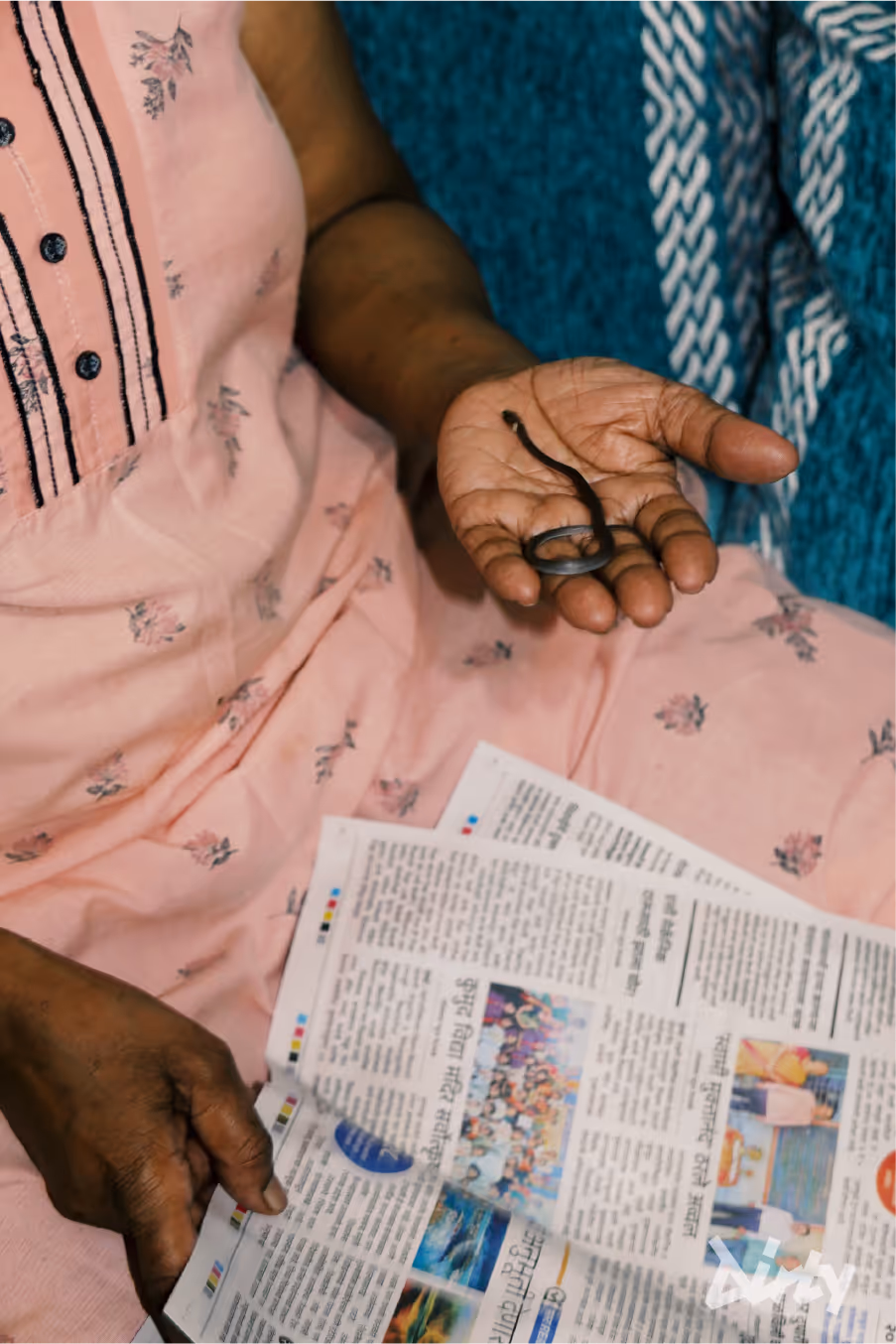 <h1 class="full">The smell hit us first. Kadam didn’t hesitate. Someone handed him scissors, and he started cutting the net. It was a rat snake, non-venomous and common in the area. Kadam let it coil around him as he worked, unbothered.</h1>